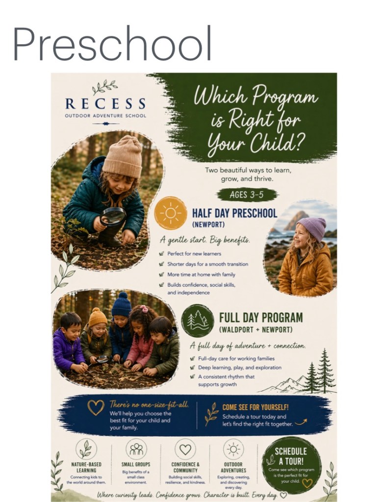 Email OregonRecess@gmail.com to add your name to our FULL TIME Waitlist.